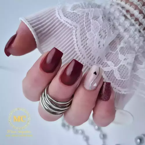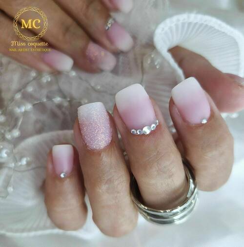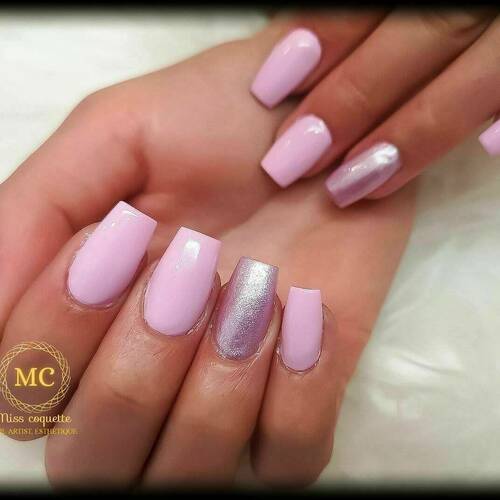 Pose de semi permanent en couleur pleine sur ces propres ongles. Pas de rallongement possible, effet sucre miroir 1 trait ou 1 strass sur 2 ongles sont offert