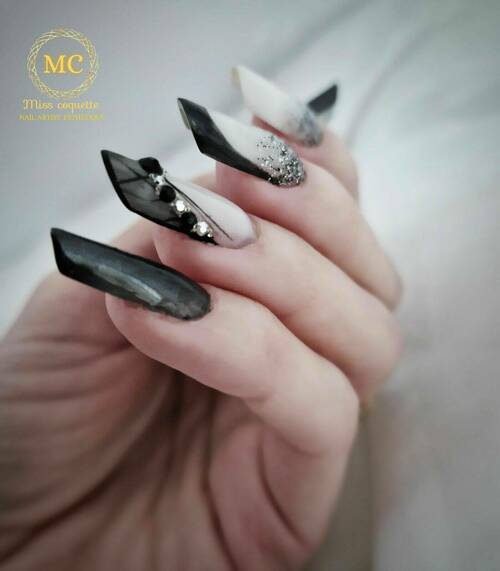 1 Ongle En French Reverse Ou Incrustation Paillettes
